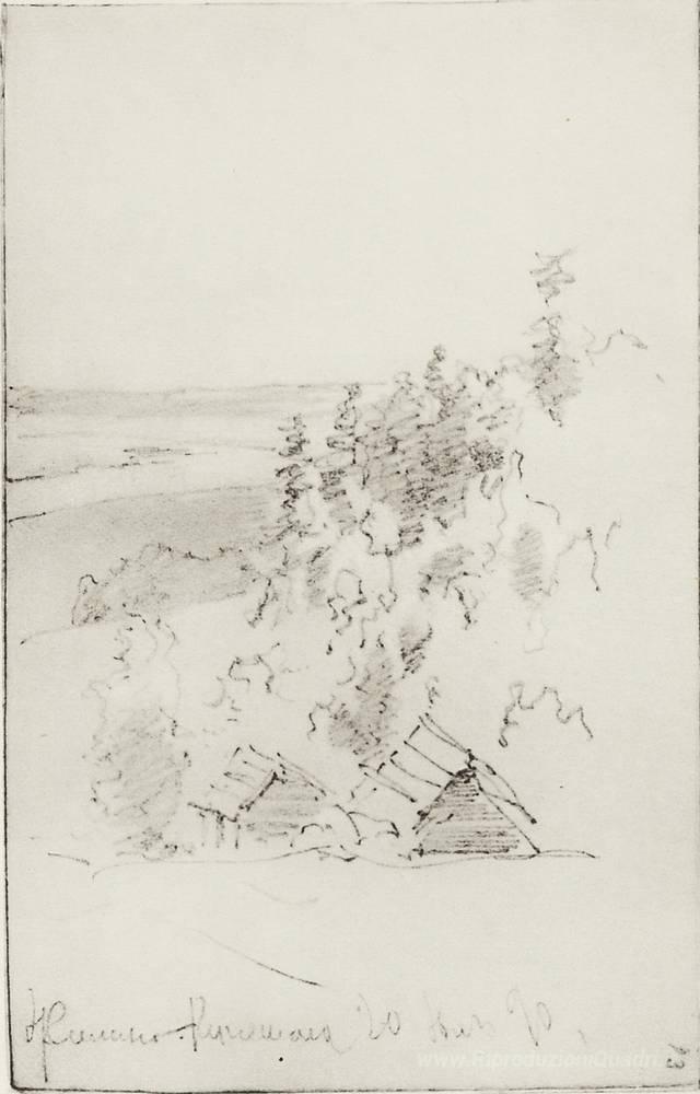 Ti offriamo una riproduzione artigianale su tela dell'opera famosa 'Paesaggio a Volga. Zhilino pressi Kineshma.' di Isaac Levitan, dal Museo delle Riproduzioni.