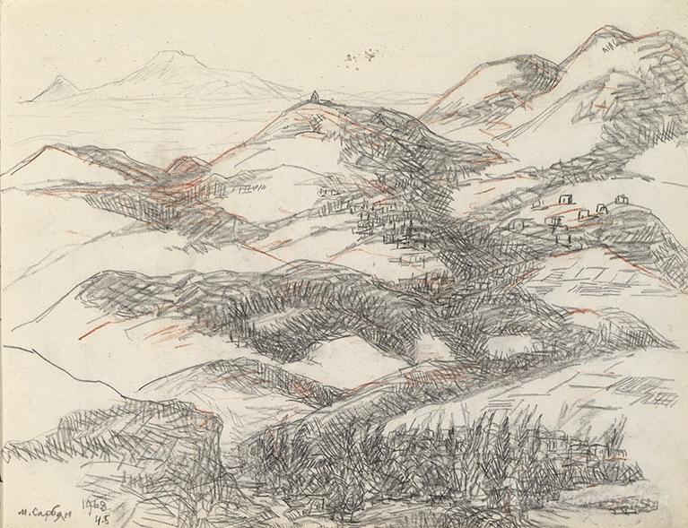 Ti offriamo una riproduzione artigianale su tela dell'opera famosa 'Paesaggio armeno' di Martiros Saryan, dal Museo delle Riproduzioni.