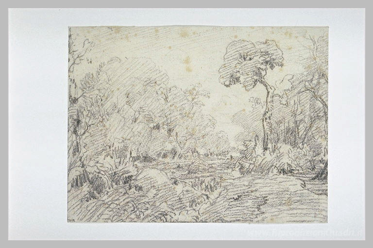 Ti offriamo una riproduzione artigianale su tela dell'opera famosa 'Paesaggio' di Theodore Rousseau, dal Museo delle Riproduzioni.