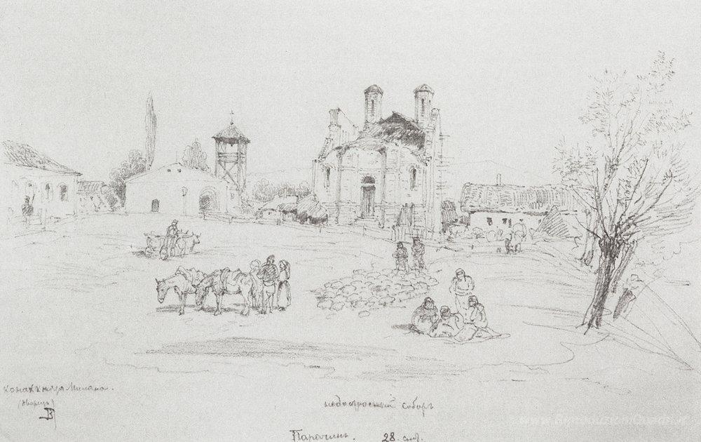 Ti offriamo una riproduzione artigianale su tela dell'opera famosa 'Paracin. 28 settembre, 1876.' di Vasily Polenov, dal Museo delle Riproduzioni.