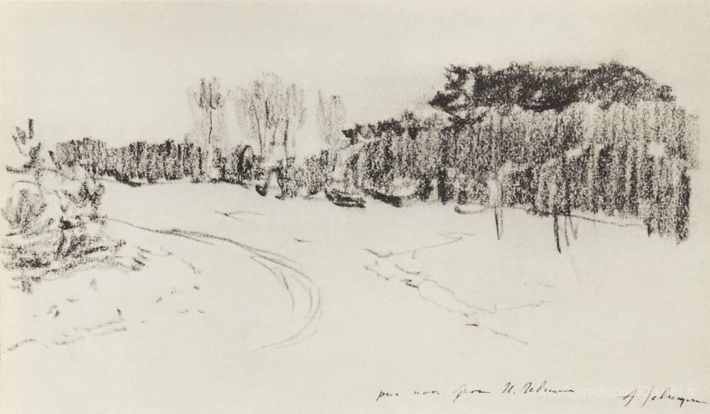 Ti offriamo una riproduzione artigianale su tela dell'opera famosa 'Percorso inverno nella foresta' di Isaac Levitan, dal Museo delle Riproduzioni.