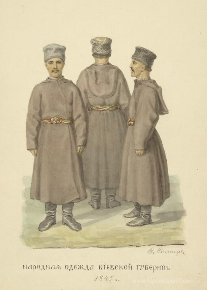 Ti offriamo una riproduzione artigianale su tela dell'opera famosa 'Persone vestiti provincia di Kiev' di Fyodor Solntsev, dal Museo delle Riproduzioni.