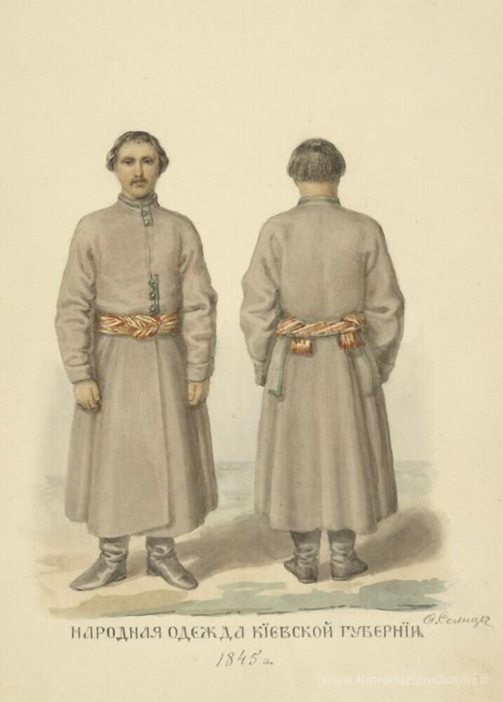 Ti offriamo una riproduzione artigianale su tela dell'opera famosa 'Persone vestiti provincia di Kiev' di Fyodor Solntsev, dal Museo delle Riproduzioni.