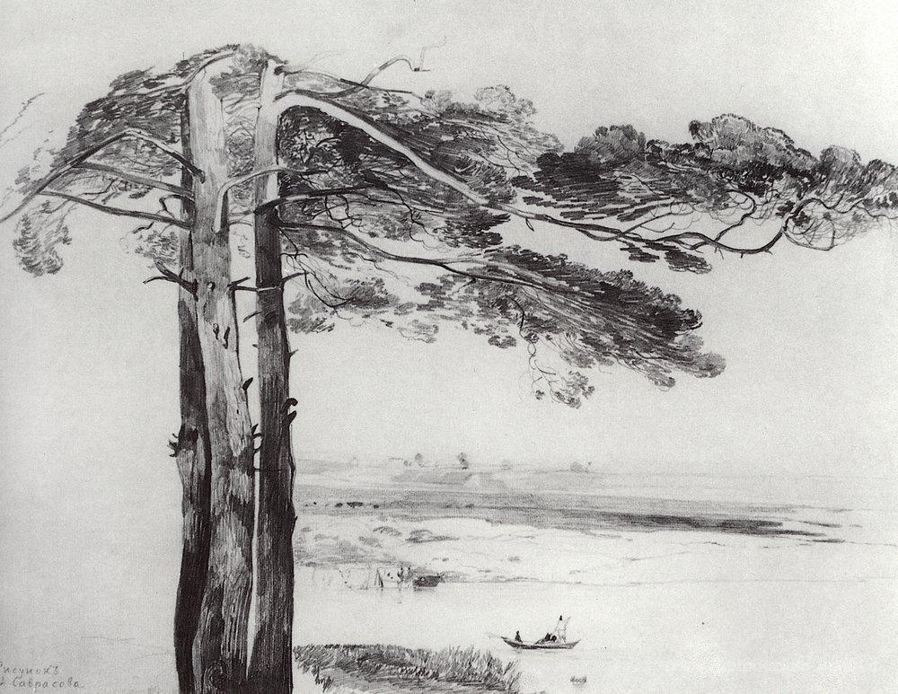 Ti offriamo una riproduzione artigianale su tela dell'opera famosa 'Pino da Gusareva' di Aleksey Savrasov, dal Museo delle Riproduzioni.