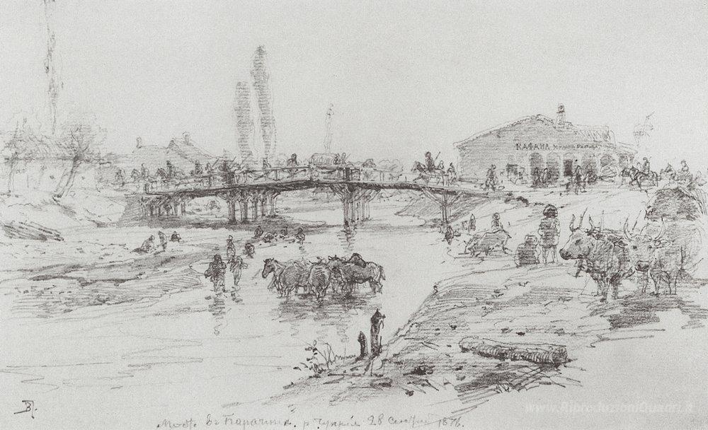 Ti offriamo una riproduzione artigianale su tela dell'opera famosa 'Ponte sul fiume Cuprija a Paracin' di Vasily Polenov, dal Museo delle Riproduzioni.
