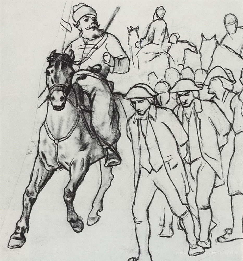 Ti offriamo una riproduzione artigianale su tela dell'opera famosa 'Pugachev convogli escort di prigionieri' di Vasily Perov, dal Museo delle Riproduzioni.