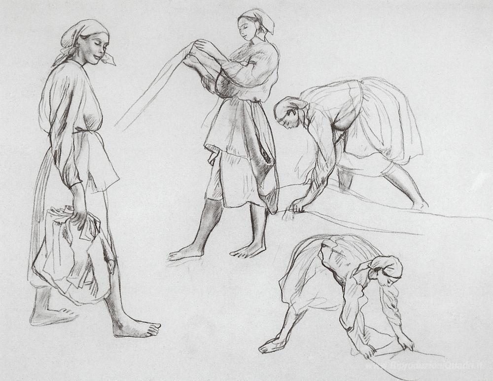 Ti offriamo una riproduzione artigianale su tela dell'opera famosa 'Quattro figure femminili' di Zinaida Serebriakova, dal Museo delle Riproduzioni.