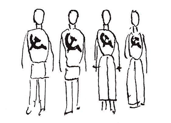 Ti offriamo una riproduzione artigianale su tela dell'opera famosa 'Quattro pezzi con la falce e martello' di Kazimir Malevich, dal Museo delle Riproduzioni.