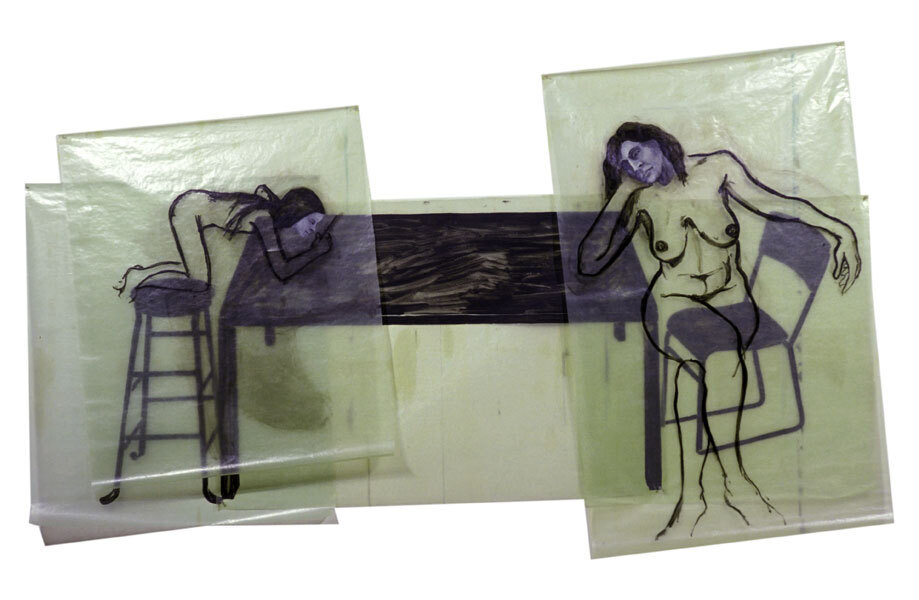 Ti offriamo una riproduzione artigianale su tela dell'opera famosa 'Ragazza su un tavolo da disegno' di Eric Fischl, dal Museo delle Riproduzioni.