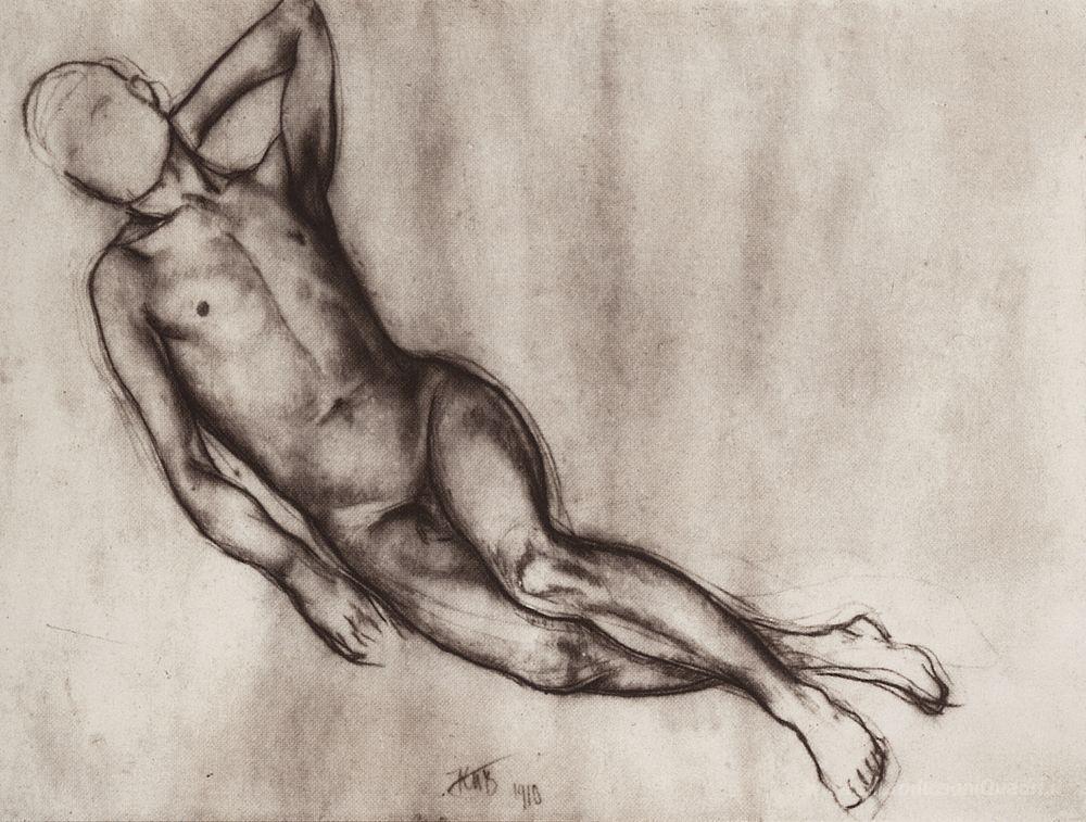 Ti offriamo una riproduzione artigianale su tela dell'opera famosa 'Ragazzo sdraiato' di Kuzma Petrov-Vodkin, dal Museo delle Riproduzioni.
