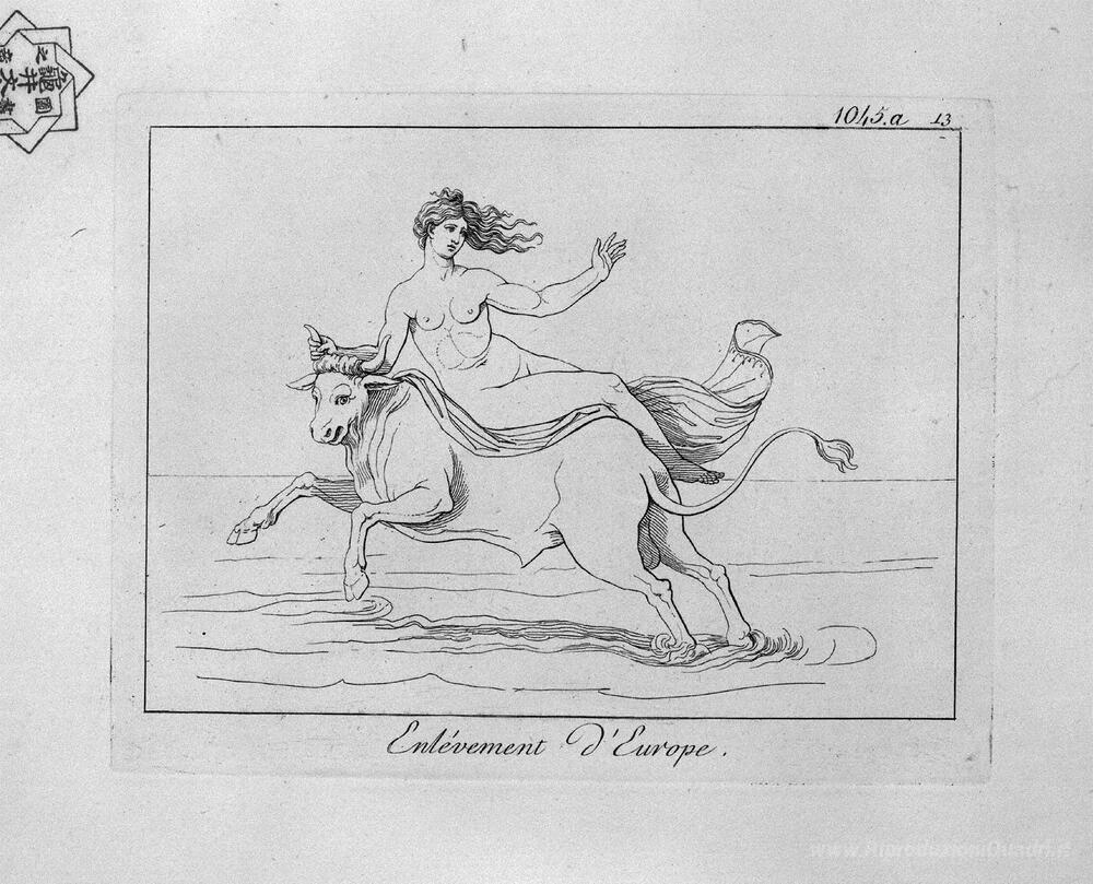 Ti offriamo una riproduzione artigianale su tela dell'opera famosa 'Ratto di Europa' di Giovanni Battista Piranesi, dal Museo delle Riproduzioni.