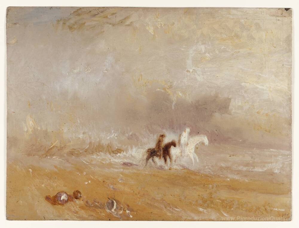 Ti offriamo una riproduzione artigianale su tela dell'opera famosa 'Riders su una spiaggia' di William Turner, dal Museo delle Riproduzioni.