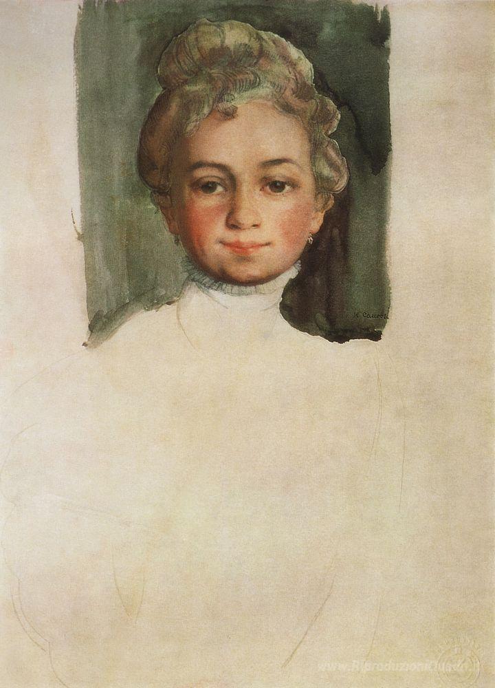 Ti offriamo una riproduzione artigianale su tela dell'opera famosa 'Ritratto di E. Vladimirskaya' di Konstantin Somov, dal Museo delle Riproduzioni.