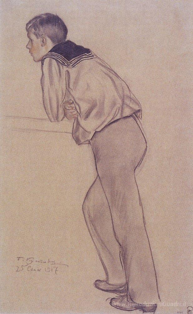 Ti offriamo una riproduzione artigianale su tela dell'opera famosa 'Ritratto di K.B. Kustodiev' di Boris Kustodiev, dal Museo delle Riproduzioni.