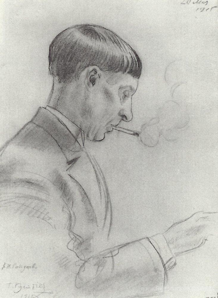 Ti offriamo una riproduzione artigianale su tela dell'opera famosa 'Ritratto di K.N. Sapunov' di Boris Kustodiev, dal Museo delle Riproduzioni.
