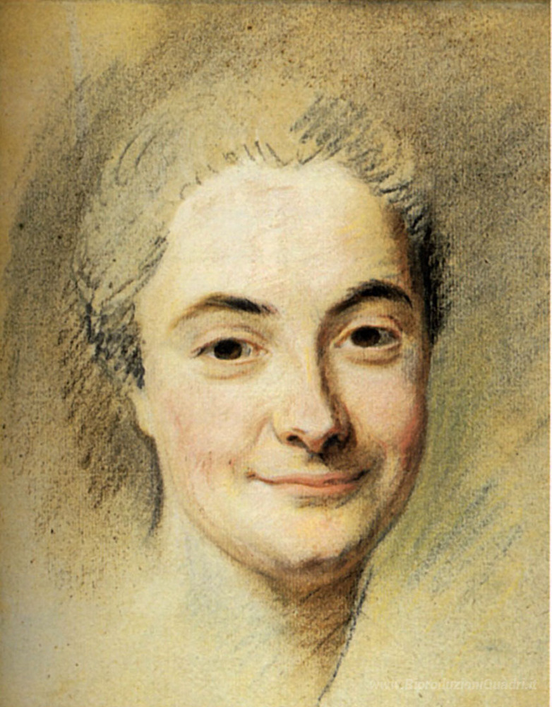 Ti offriamo una riproduzione artigianale su tela dell'opera famosa 'Ritratto di Mademoiselle Dangeville' di Maurice Quentin de La Tour, dal Museo delle Riproduzioni.