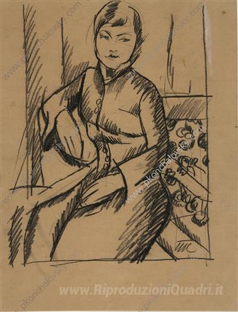 Ti offriamo una riproduzione artigianale su tela dell'opera famosa 'Ritratto di signora. Disegno per il ritratto di Anna Emilevna Go' di Pyotr Konchalovsky, dal Museo delle Riproduzioni.