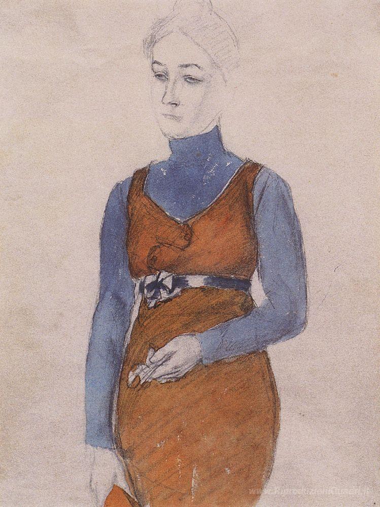 Ti offriamo una riproduzione artigianale su tela dell'opera famosa 'Ritratto di una donna' di Kuzma Petrov-Vodkin, dal Museo delle Riproduzioni.