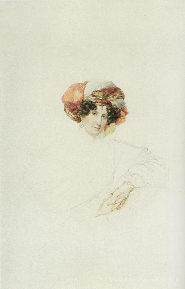 Ti offriamo una riproduzione artigianale su tela dell'opera famosa 'Ritratto di una sconosciuta in un turbante' di Karl Bryullov, dal Museo delle Riproduzioni.
