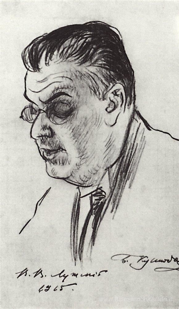 Ti offriamo una riproduzione artigianale su tela dell'opera famosa 'Ritratto di V. Luzhsky' di Boris Kustodiev, dal Museo delle Riproduzioni.