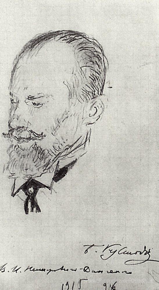 Ti offriamo una riproduzione artigianale su tela dell'opera famosa 'Ritratto di Vladimir Nemirovich-Danchenko' di Boris Kustodiev, dal Museo delle Riproduzioni.