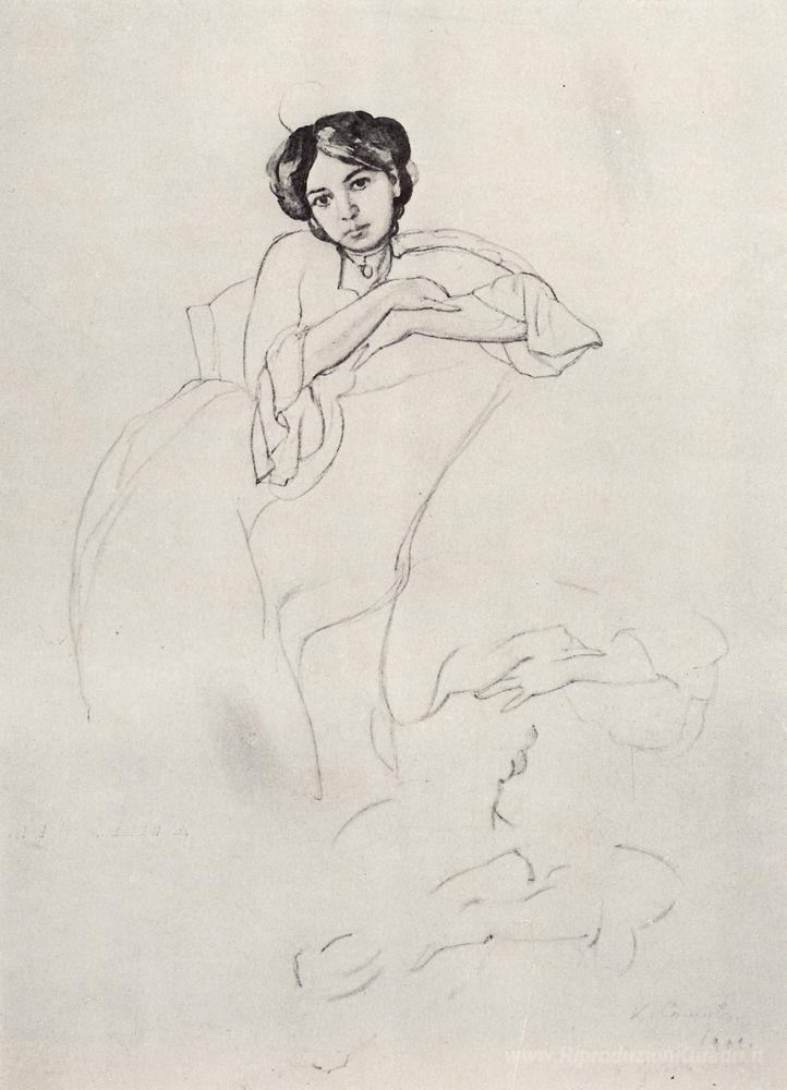 Ti offriamo una riproduzione artigianale su tela dell'opera famosa 'Ritratto femminile e Sketches of Hands' di Konstantin Somov, dal Museo delle Riproduzioni.