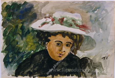 Ti offriamo una riproduzione artigianale su tela dell'opera famosa 'Ritratto femminile (Voronova). Studio.' di Pyotr Konchalovsky, dal Museo delle Riproduzioni.