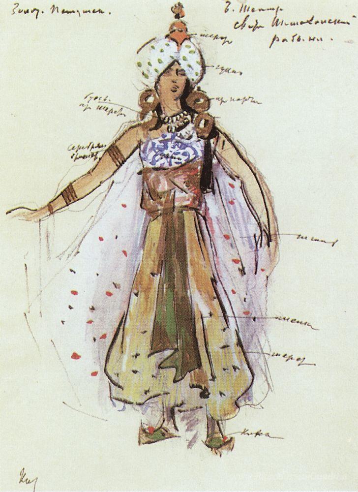 Ti offriamo una riproduzione artigianale su tela dell'opera famosa 'Schiavo del Shemakhan Regina seguito' di Konstantin Korovin, dal Museo delle Riproduzioni.