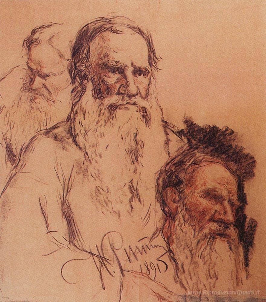 Ti offriamo una riproduzione artigianale su tela dell'opera famosa 'Schizzi di Lev Tolstoj' di Ilya Repin, dal Museo delle Riproduzioni.
