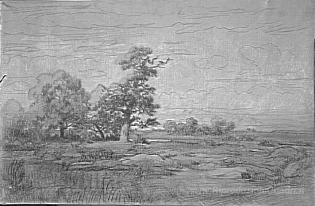 Ti offriamo una riproduzione artigianale su tela dell'opera famosa 'Schizzo di paesaggio' di Theodore Rousseau, dal Museo delle Riproduzioni.