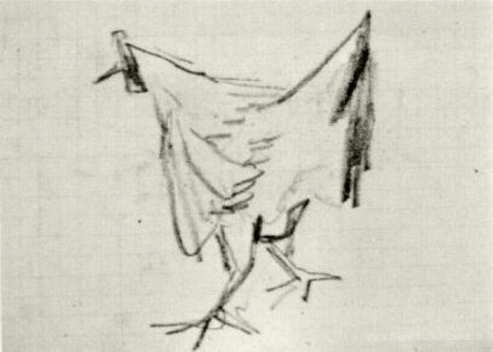 Ti offriamo una riproduzione artigianale su tela dell'opera famosa 'Schizzo di una gallina' di Vincent van Gogh, dal Museo delle Riproduzioni.