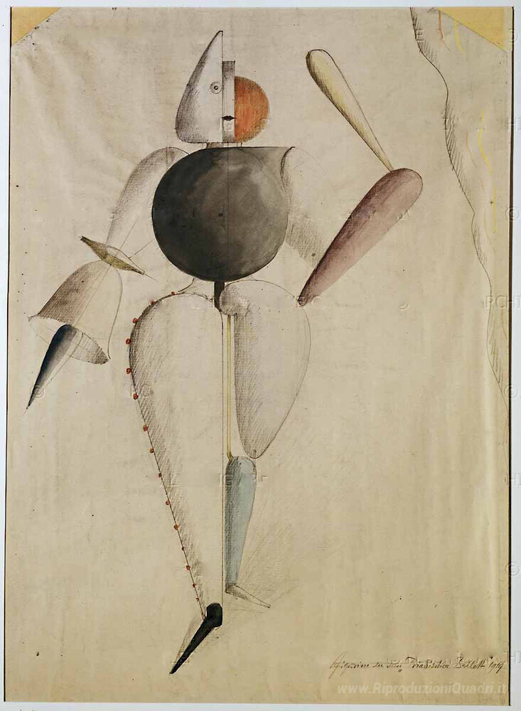 Ti offriamo una riproduzione artigianale su tela dell'opera famosa 'Schizzo preliminare per il Balletto triadico' di Oskar Schlemmer, dal Museo delle Riproduzioni.