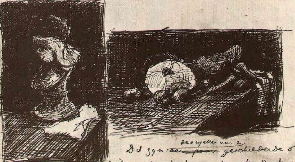 Ti offriamo una riproduzione artigianale su tela dell'opera famosa 'Scultura e Natura morta con cavolo e Zoccoli' di Vincent van Gogh, dal Museo delle Riproduzioni.