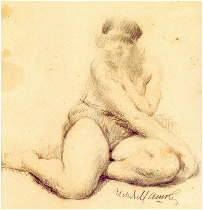 Ti offriamo una riproduzione artigianale su tela dell'opera famosa 'Seduto nudo, mettendo la mano sulla sua coscia' di Ilya Mashkov, dal Museo delle Riproduzioni.