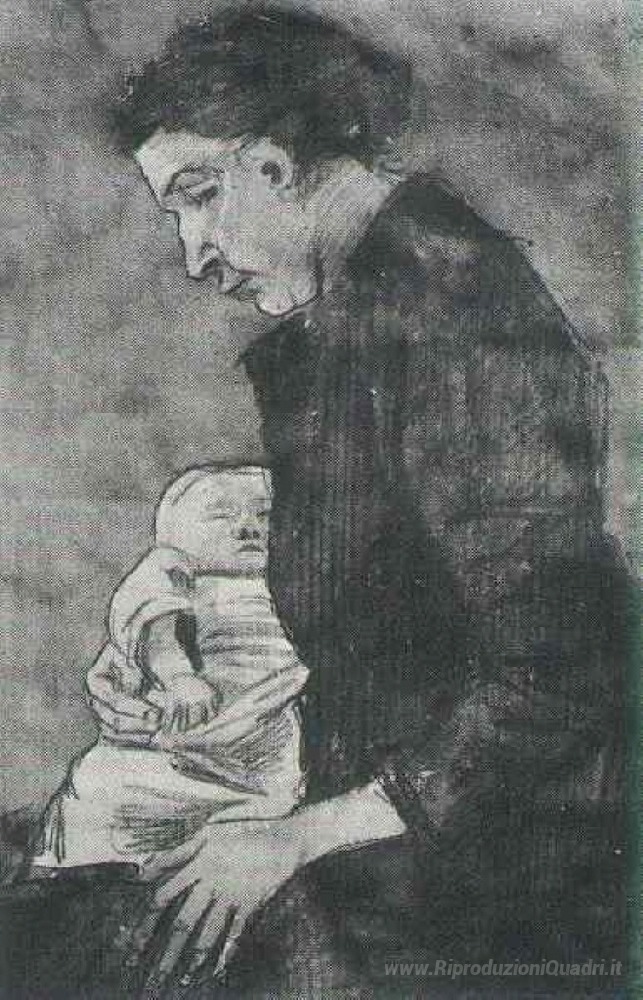 Ti offriamo una riproduzione artigianale su tela dell'opera famosa 'Sien Nursing Baby, mezza figura' di Vincent van Gogh, dal Museo delle Riproduzioni.