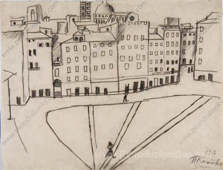 Ti offriamo una riproduzione artigianale su tela dell'opera famosa 'Siena. Il quadrato.' di Pyotr Konchalovsky, dal Museo delle Riproduzioni.