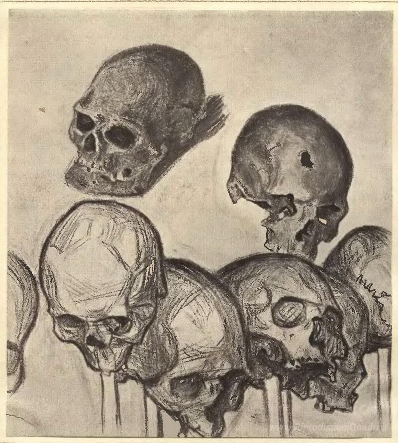 Ti offriamo una riproduzione artigianale su tela dell'opera famosa 'Skulls' di Nicholas Roerich, dal Museo delle Riproduzioni.