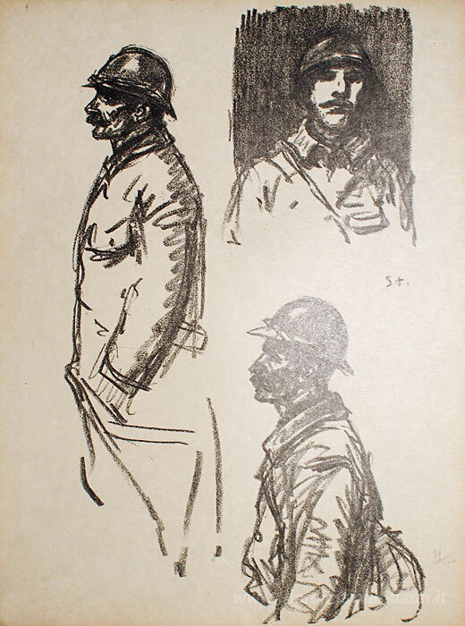 Ti offriamo una riproduzione artigianale su tela dell'opera famosa 'Soldats- Trois Croquis' di Theophile Steinlen, dal Museo delle Riproduzioni.