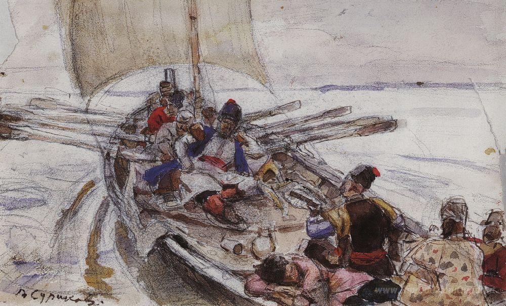 Ti offriamo una riproduzione artigianale su tela dell'opera famosa 'Stepan Razin' di Vasily Surikov, dal Museo delle Riproduzioni.