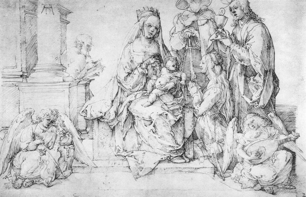 Ti offriamo una riproduzione artigianale su tela dell'opera famosa 'Studi su una "immagine della Vergine" grande Madonna col Bambino' di Albrecht Durer, dal Museo delle Riproduzioni.