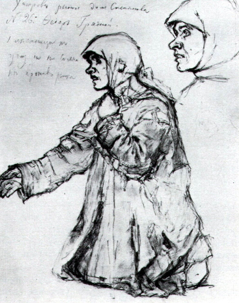 Ti offriamo una riproduzione artigianale su tela dell'opera famosa 'Studiare a "Boyarynya Morozova"' di Vasily Surikov, dal Museo delle Riproduzioni.