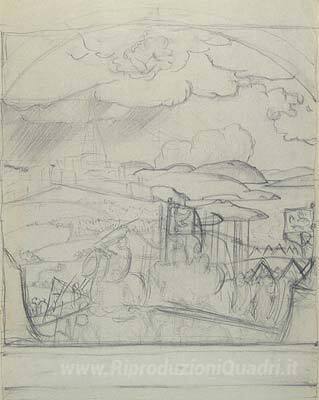 Ti offriamo una riproduzione artigianale su tela dell'opera famosa 'Studiare a "Conquista di Kazan"' di Nicholas Roerich, dal Museo delle Riproduzioni.