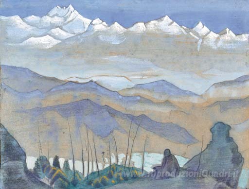 Ti offriamo una riproduzione artigianale su tela dell'opera famosa 'Studiare a "Libro della Sapienza"' di Nicholas Roerich, dal Museo delle Riproduzioni.