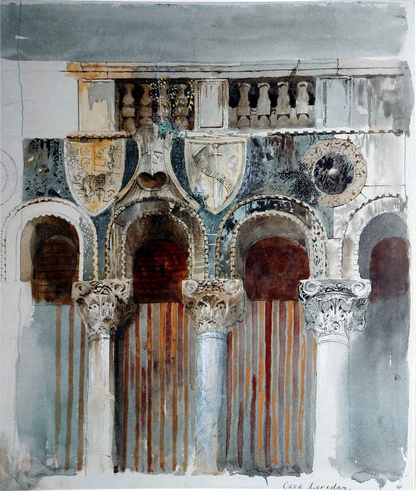 Ti offriamo una riproduzione artigianale su tela dell'opera famosa 'Studio della Intarsio Marmo sul fronte della Casa Loredan' di John Ruskin, dal Museo delle Riproduzioni.