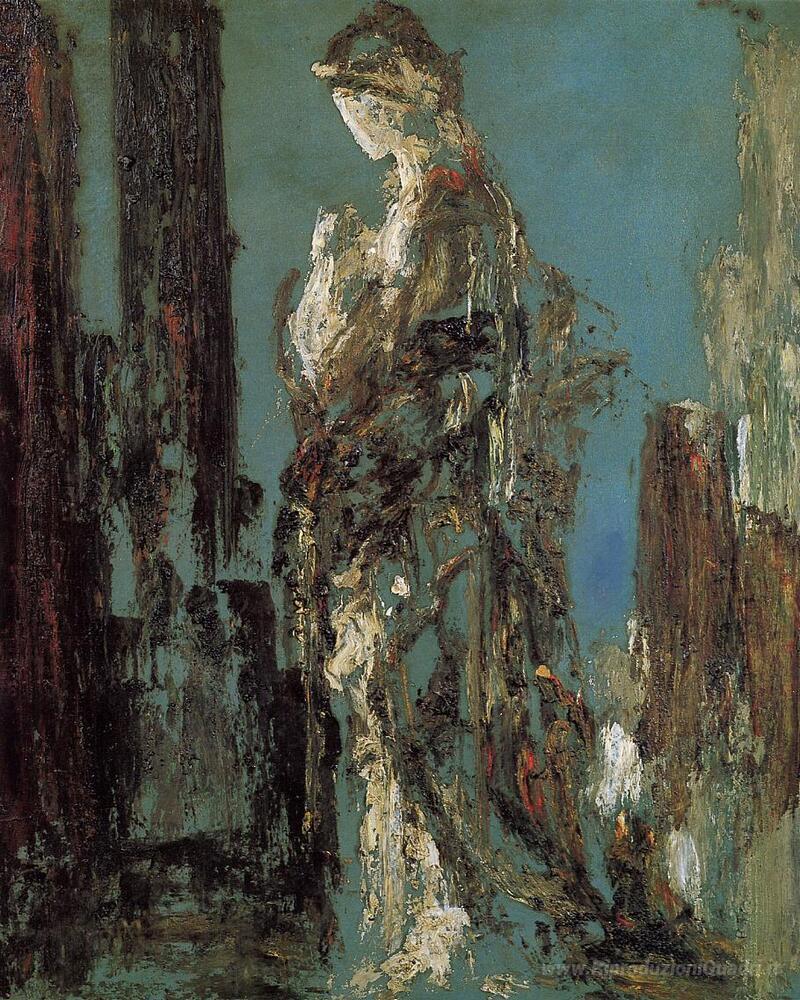 Ti offriamo una riproduzione artigianale su tela dell'opera famosa 'Studio di Helen' di Gustave Moreau, dal Museo delle Riproduzioni.