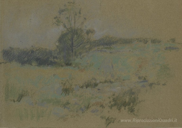 Ti offriamo una riproduzione artigianale su tela dell'opera famosa 'Studio di un paesaggio' di John Henry Twachtman, dal Museo delle Riproduzioni.