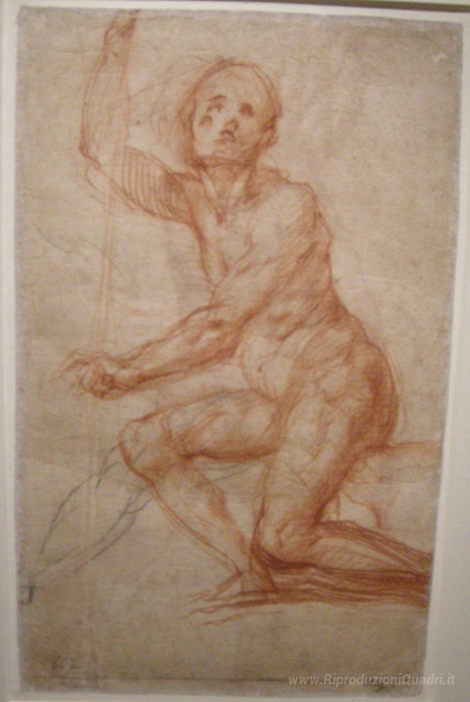 Ti offriamo una riproduzione artigianale su tela dell'opera famosa 'Studio di un uomo seduto' di Jacopo Pontormo, dal Museo delle Riproduzioni.