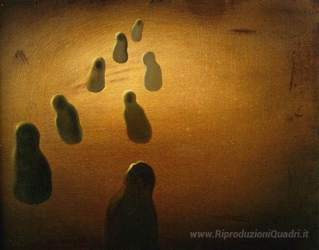 Ti offriamo una riproduzione artigianale su tela dell'opera famosa 'Studio per Acido desossiribonucleico arabi' di Salvador Dali, dal Museo delle Riproduzioni.