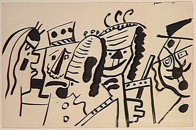Ti offriamo una riproduzione artigianale su tela dell'opera famosa 'Studio per il circo, i clown' di Fernand Leger, dal Museo delle Riproduzioni.