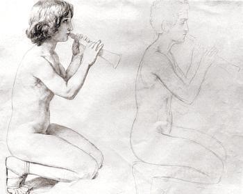 Ti offriamo una riproduzione artigianale su tela dell'opera famosa 'Studio per il dipinto, "Apollo, Giacinto e Cypress"' di Alexander Ivanov, dal Museo delle Riproduzioni.
